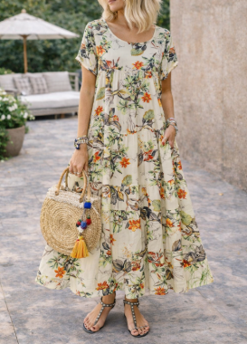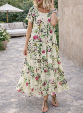Ta oszałamiająca kwiatowa sukienka midi łączy w sobie luźny krój z szykownym, warstwowym designem, dzięki czemu jest idealnym wyborem na słoneczne dni. Doskonale wszechstronna, zarówno na niezobowiązujące wyjścia, jak i na brunch z przyjaciółmi, ta sukienka sprawi, że będziesz wyglądać stylowo bez wysiłku przez cały sezon.