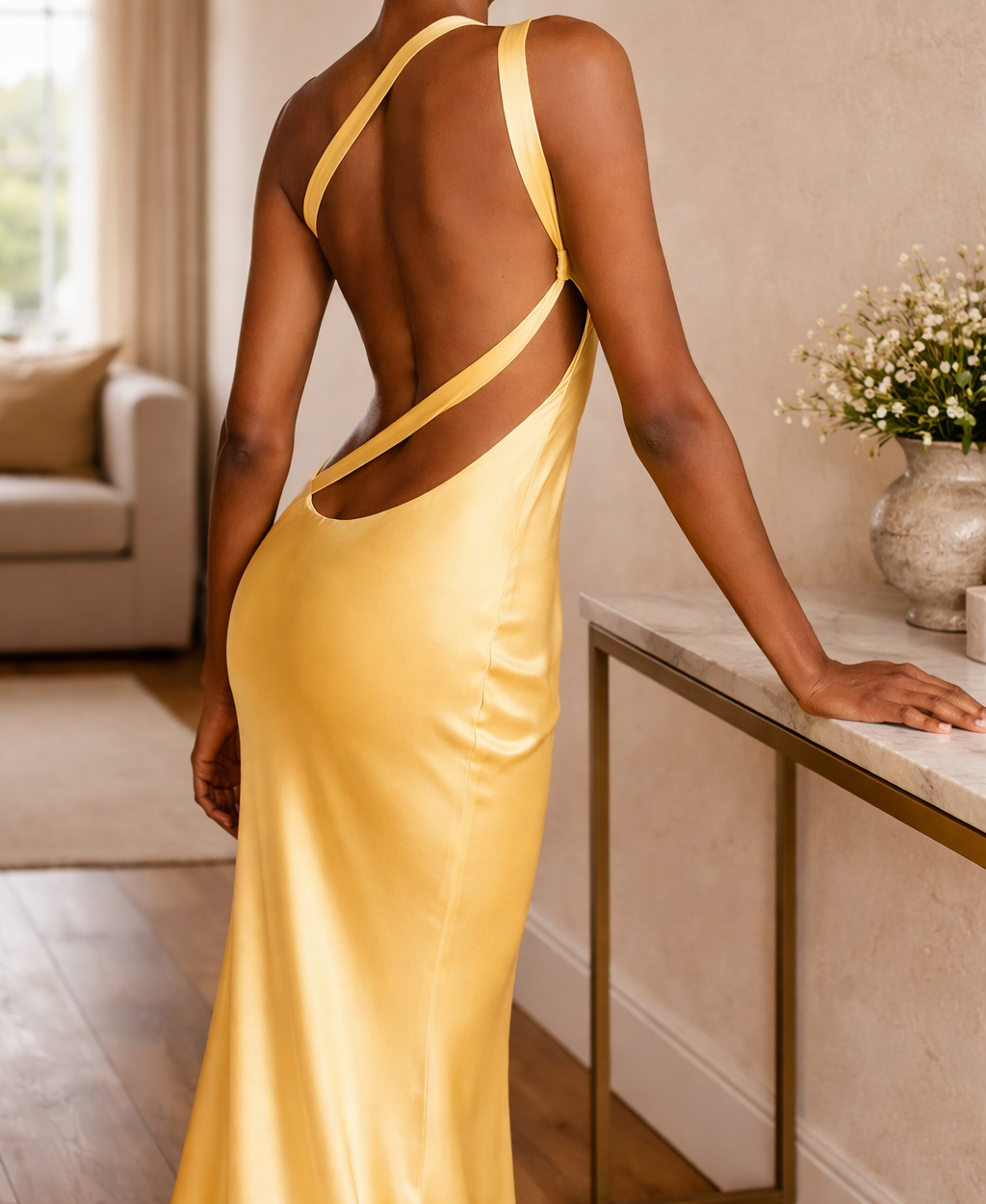 Zrób wrażenie w naszej sukience maxi bez pleców na jedno ramię